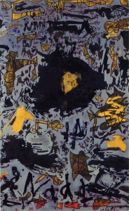 The exhibit, nonetheless, has a prologue that is relatively distant in time, although not in conception. It begins with a series of works made between 2000 and 2003, as a result of his trips to the United States and China. Distance, both physical and emotional, and the discovery of new landscapes and states of mind, and, later, the return and the need for readjusting, materialize in a turning point in his work, emphasized by a meticulous study of color, geometric composition and the purity of gesture, with a continually increasing vocation for pure and gestural abstraction. All these components were accentuated during his stay at the Yaddo Foundation (Saratoga Springs, New York) in 2002, sponsored by the Harriet & Esteban Vicente Foundation; the contrast between his quiet work space and the destruction of the World Trade Center a few months earlier inspired the compositions collected under the joint title of The Bird House: the bird houses substituted the wounded city, sheltering all the annihilated souls.